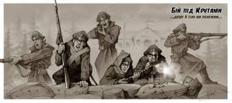 29-30 січня 1918 року біля залізничної станції Крути, що на Чернігівщині, відбувся бій між українськими оборонцями – вихованцями військових шкіл та більшовицькою армією. Трагічна подія мала місце за 130 кілометрів від Києва. Тоді у нерівному бою загинули молоді юнаки, які власною жертовністю вберегли Українську державність. За даними істориків, у бою полягло щонайменше 300 більшовиків та близько 100 крутянців. Подвиг крутянців дав змогу затримати наступ більшовиків. За цей час з Києва вдалося евакуювати центральні органи влади, документи, цінності та провести організований відступ військ. І найважливіше – ця затримка дала можливість завершити переговори з кайзерівською Німеччиною про підписання мирного договору, що означало міжнародне визнання Української держави та вказувало, що більшовики є окупантами території суверенної держави. Відтоді 29 січня в Україні щорічно відзначають День пам’яті Героїв Крут, який є символом героїзму та самопожертви в боротьбі за незалежність.